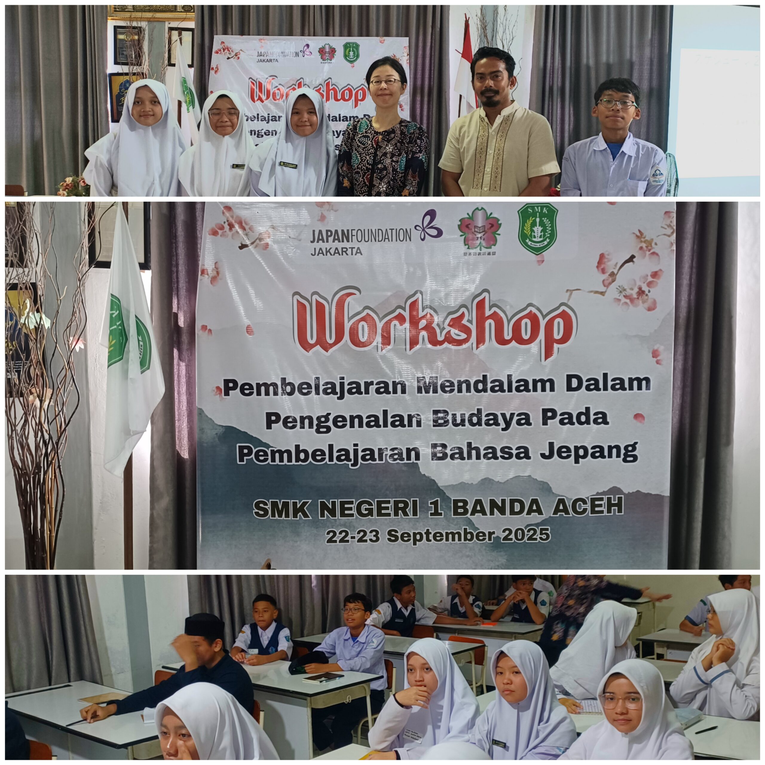 Banda Aceh – Suasana ceria tampak di wajah santri Dayah Samudera Pasai Madani (DSPM) saat mengikuti Workshop Pembelajaran Mendalam dalam Pengenalan Budaya pada Pembelajaran Bahasa Jepang yang digelar di SMK Negeri 1 Banda Aceh pada Selasa, 23 September 2025.
